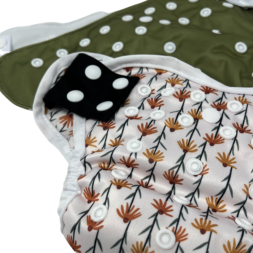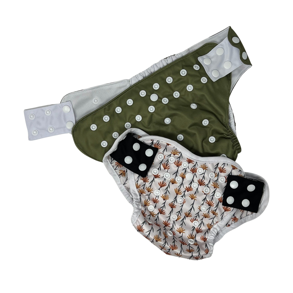 We love keeping inclusivity at the center of what we do at Stout House. That's why we have created our thoughtful and handy snap extenders! We know not everyone's diapering journey ends when they have outgrown their cloth. That's where these extenders come in. Made with the same high quality PUL that our diapers are made from, these ensure no moisture can escape. They're also fully equipped with our beloved matte snaps that extend the diaper up to two extra snap settings (six inches total with both extenders!).